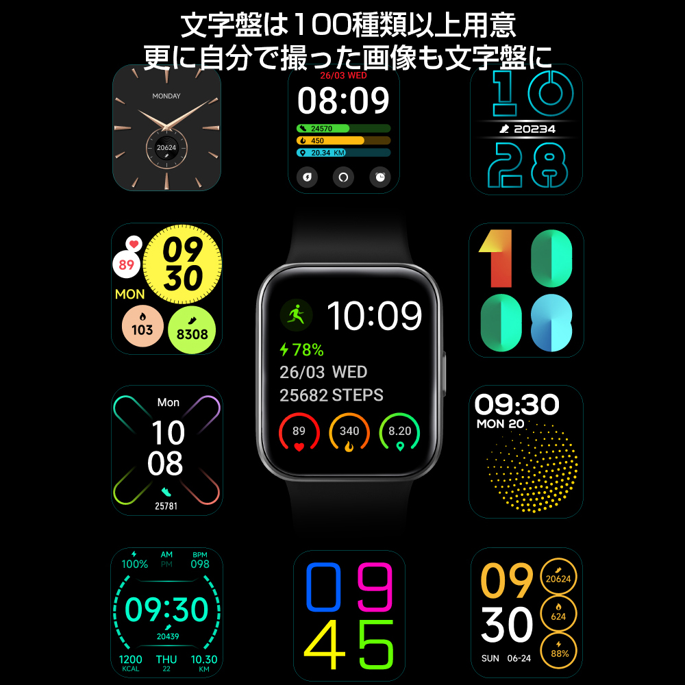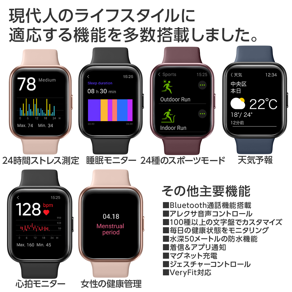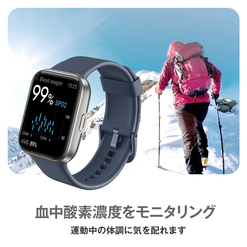 BLIXIA スマートウォッチ Bluetooth通話機能 1.69インチ大画面 心拍数計 血中酸素濃度計 水深50m防水 アレクサ対応 5ATM 24時間ストレス測定 iPhone Android対応 国内正規品 ID208J